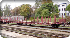Čtyřnápravový nízkostěnný vůz se sklopnými bočními stěnami a klanicemi určený pro přepravu objemných kusových zásilek, dlouhých nákladů, silničních vozidel a výrobků hutního, strojního a stavebního průmyslu. |